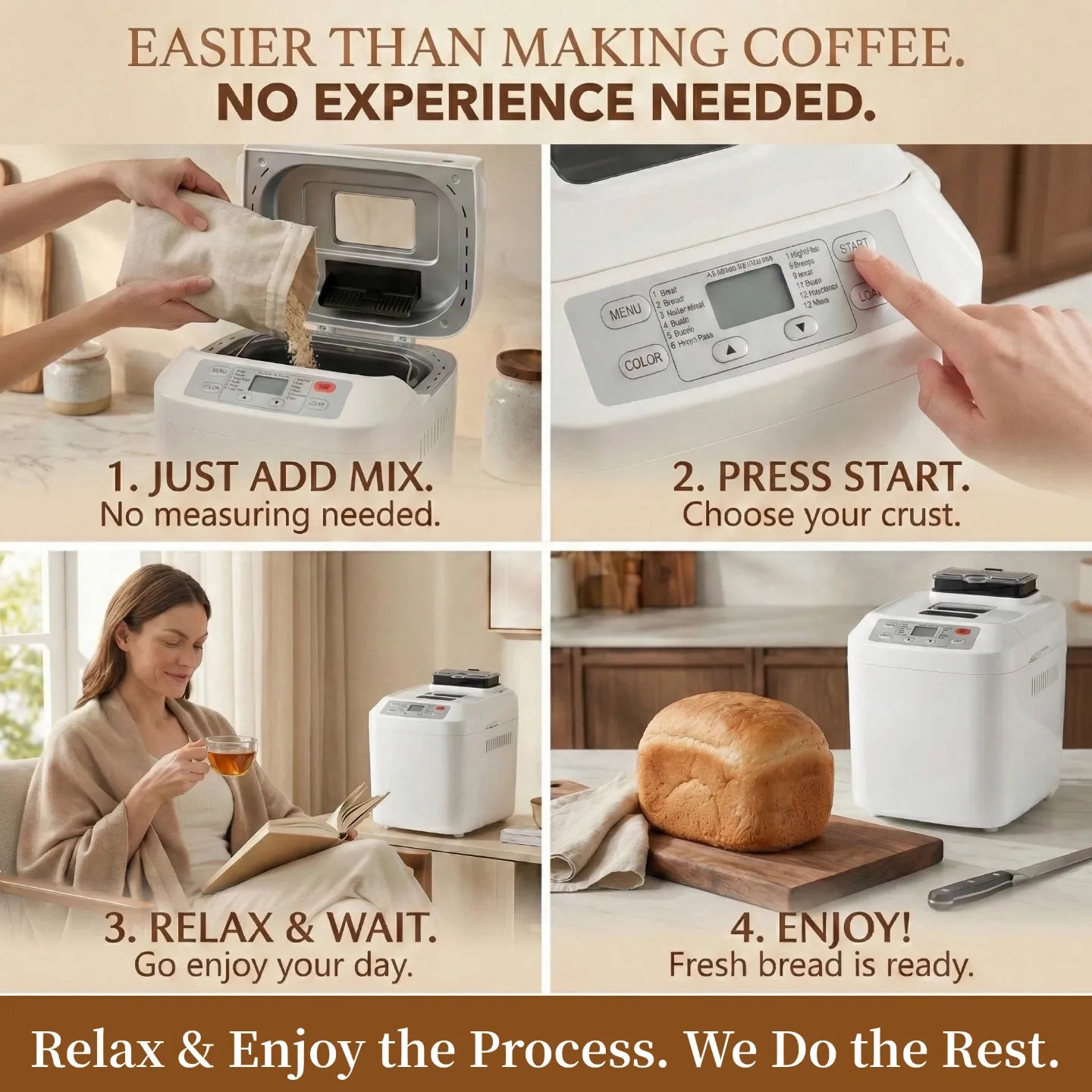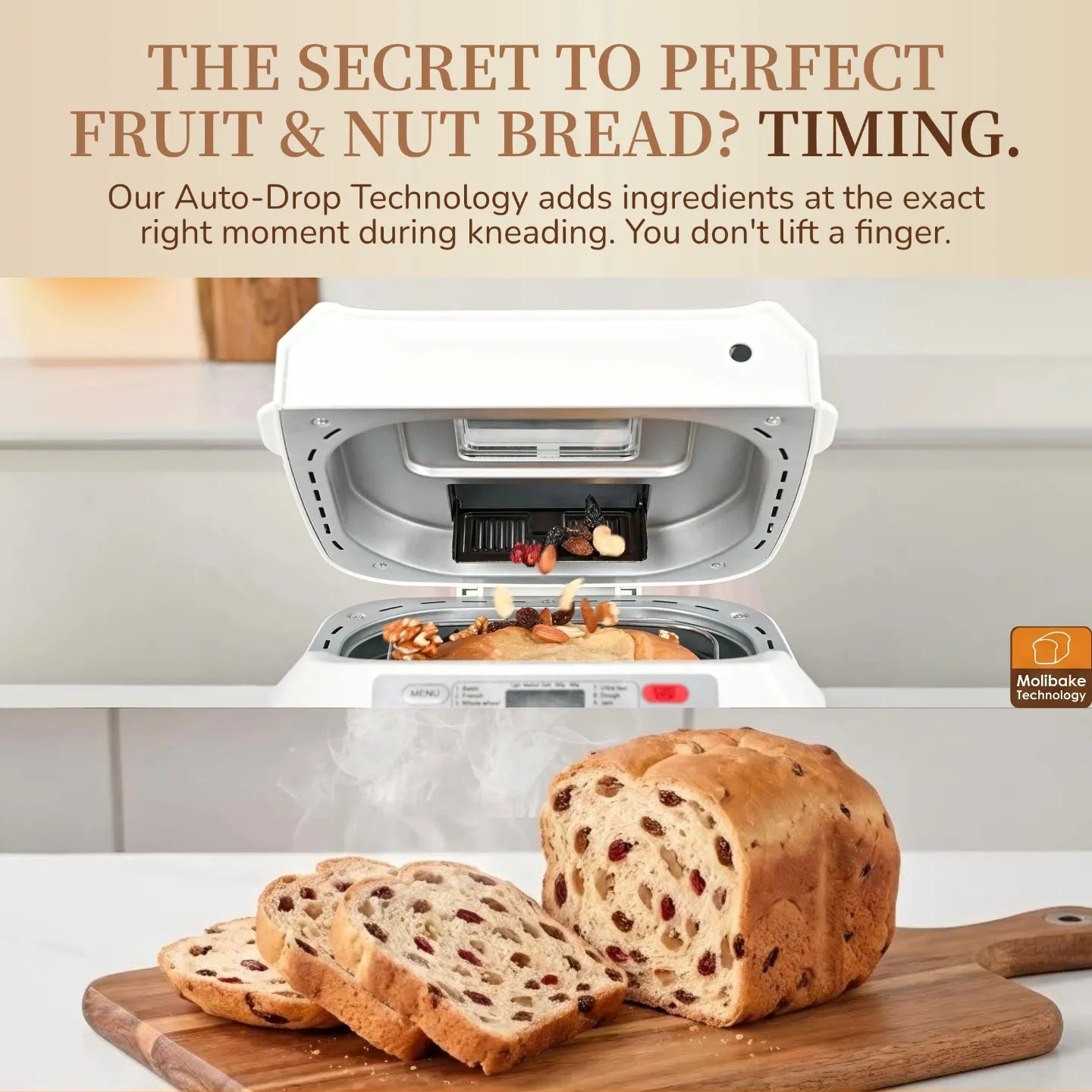 No more sticky counters. No more sore arms. Just fresh bread.